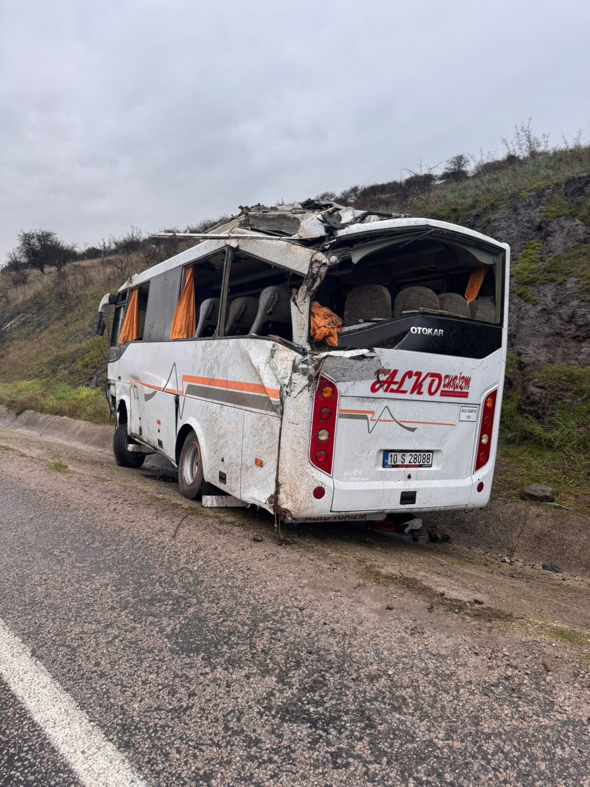 Balıkesir Bandırma-Gönen kara yolu Taştepe mevkisinde tekstil fabrikasındaki gece vardiyasından çıkan işçileri taşıyan servis midibüsü, rampadan inerken yağış nedeniyle kayganlaşan yolda kayarak, yoldan çıktı.