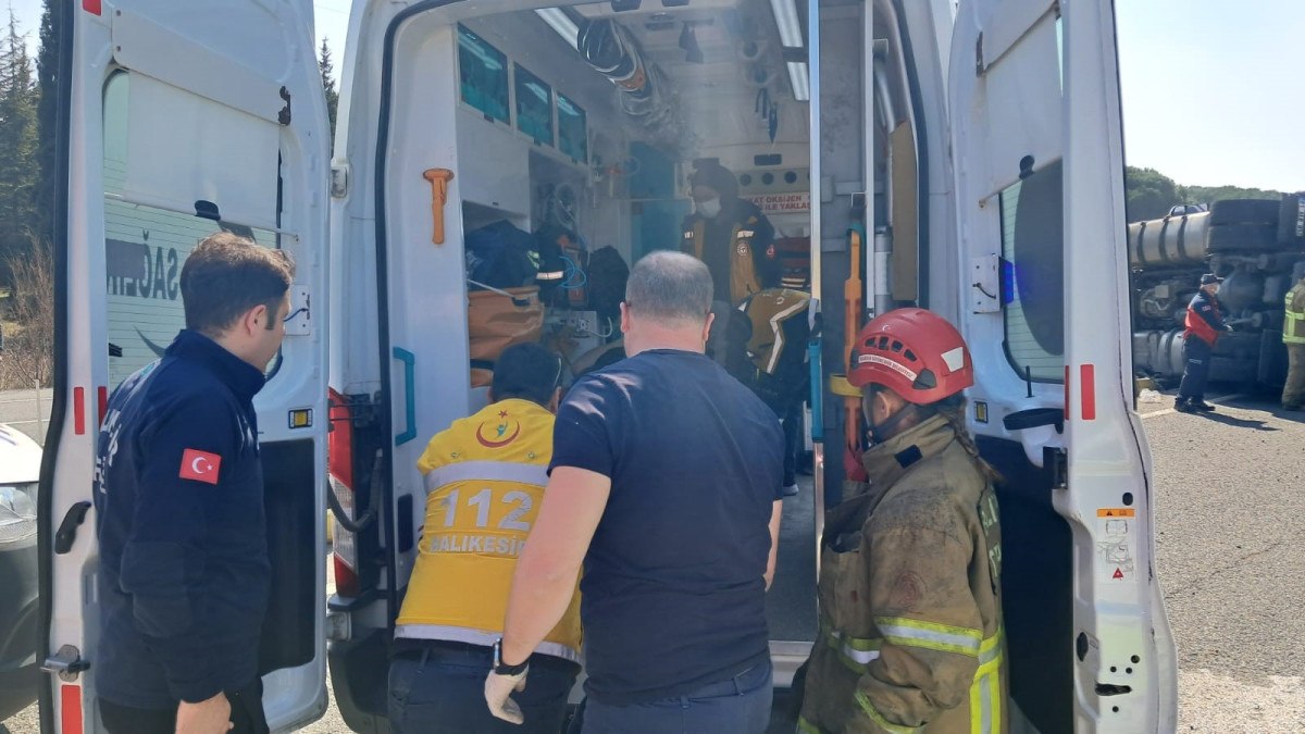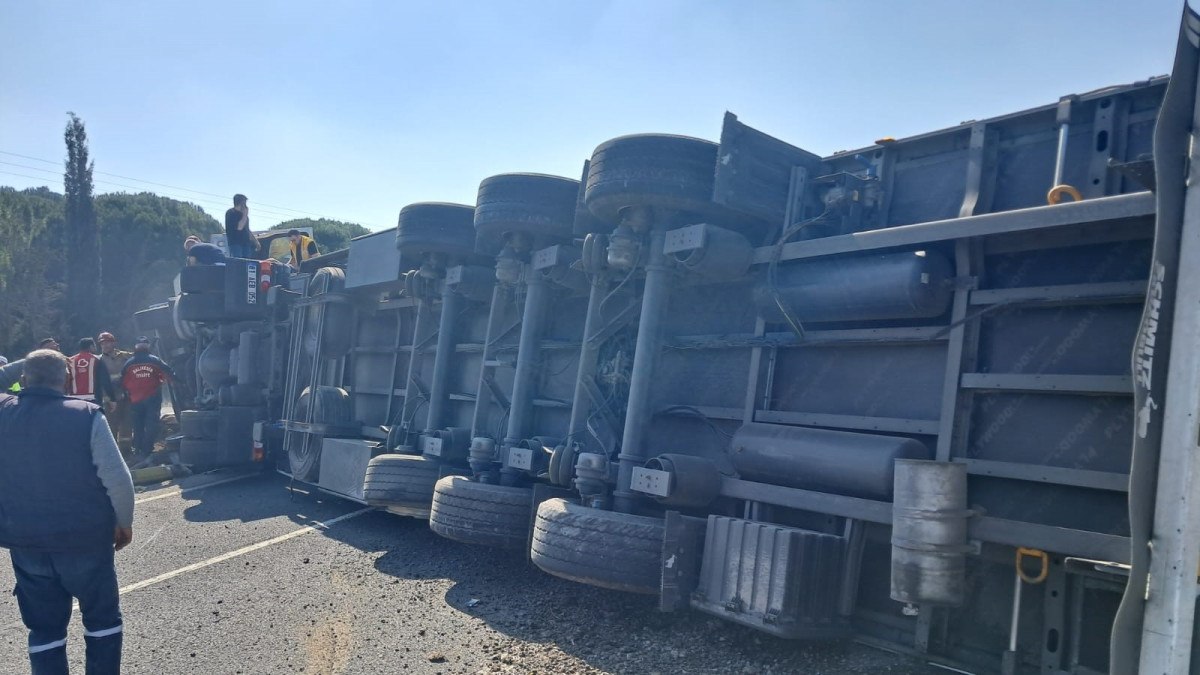 Balıkesir’de kaza yapan tır yolun kapanmasına neden oldu