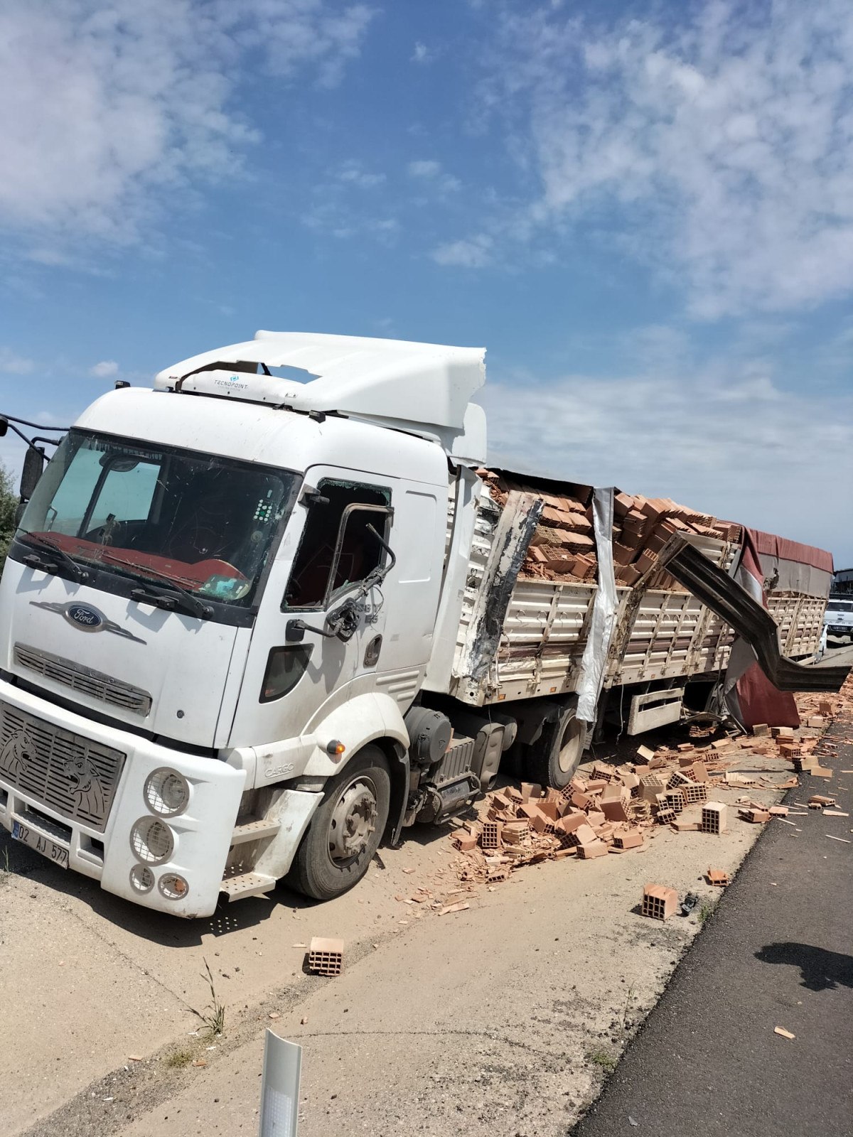 Yol çalışması nedeniyle tek şeride düşen yolda tuğla yüklü 02 AJ 577 plakalı tır ile karşıdan yönden gelen 28 AA 487 plakalı tır kafa kafaya çarpıştı.