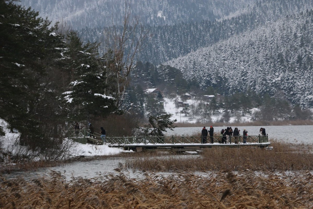 Bolu’nun doğa harikası Abant Gölü Mili Parkı’nda kar yağışı etkisini göstermeye devam ediyor.