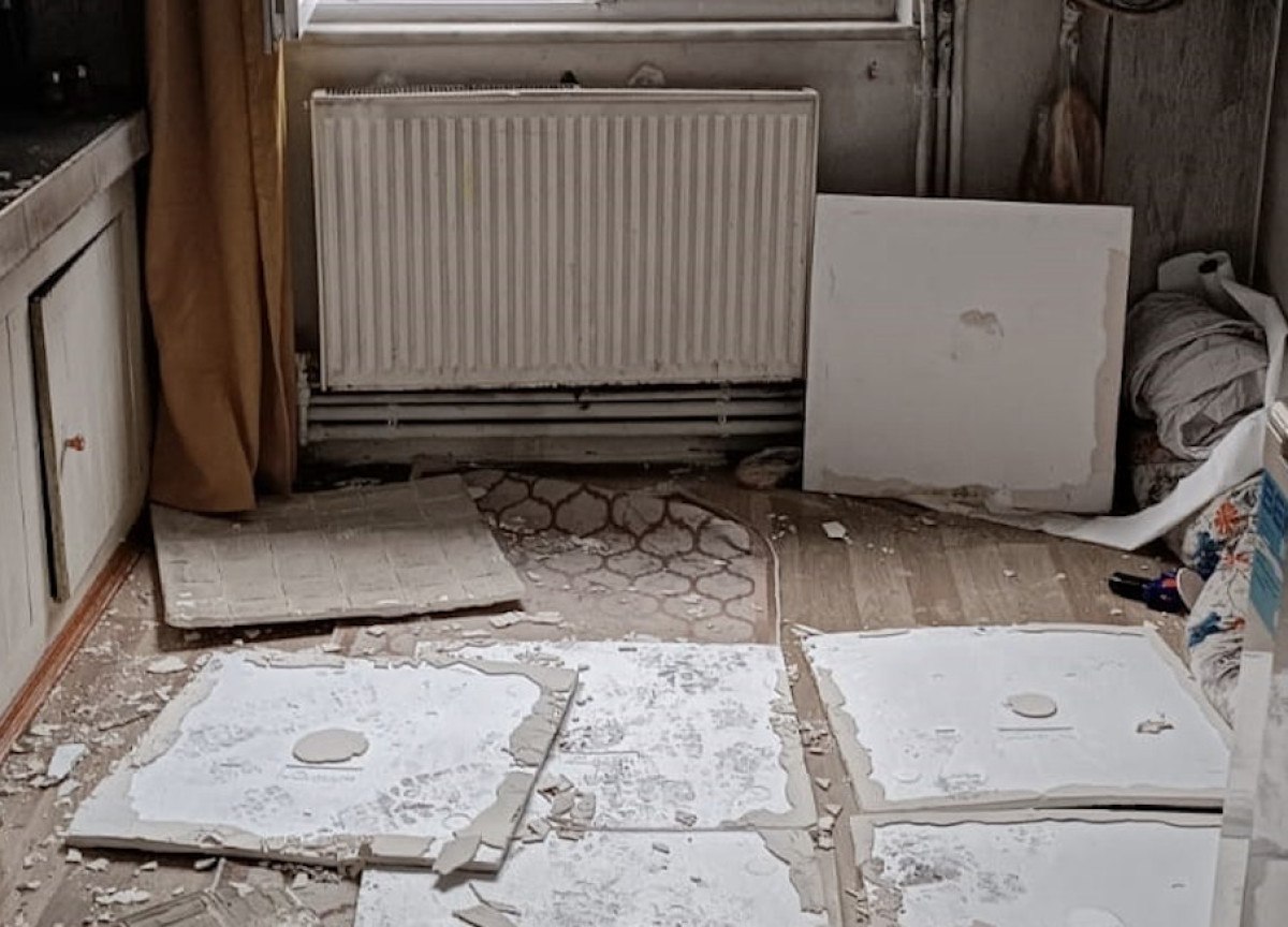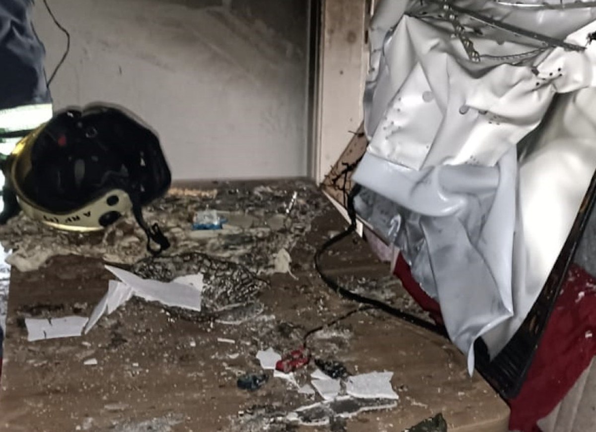 Yangın nedeniyle salon ve mutfakta büyük çapta hasar meydana geldi.