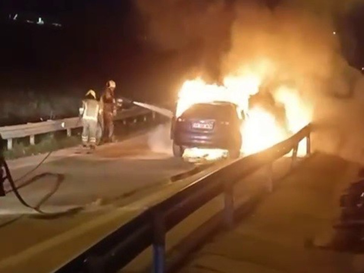 Sürücünün aracı kenara çekmesinin ardından alevler bir anda otomobili sardı.