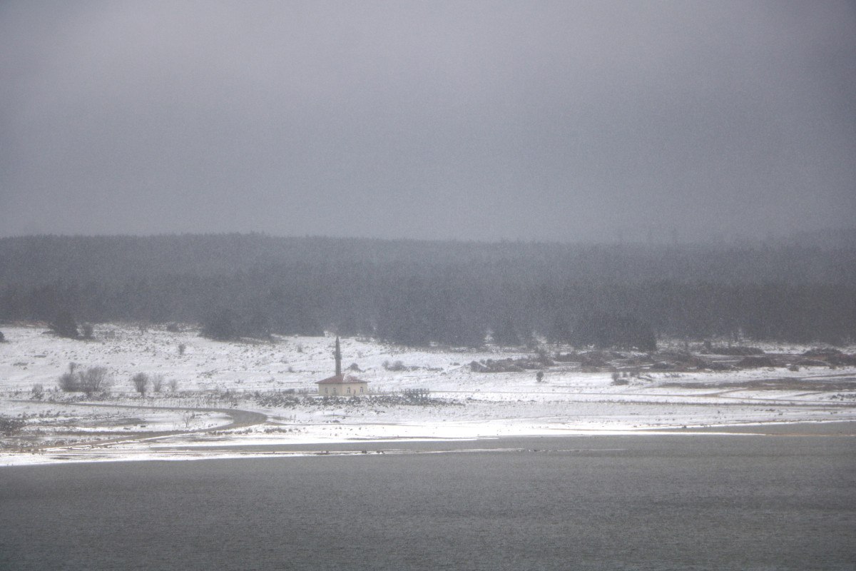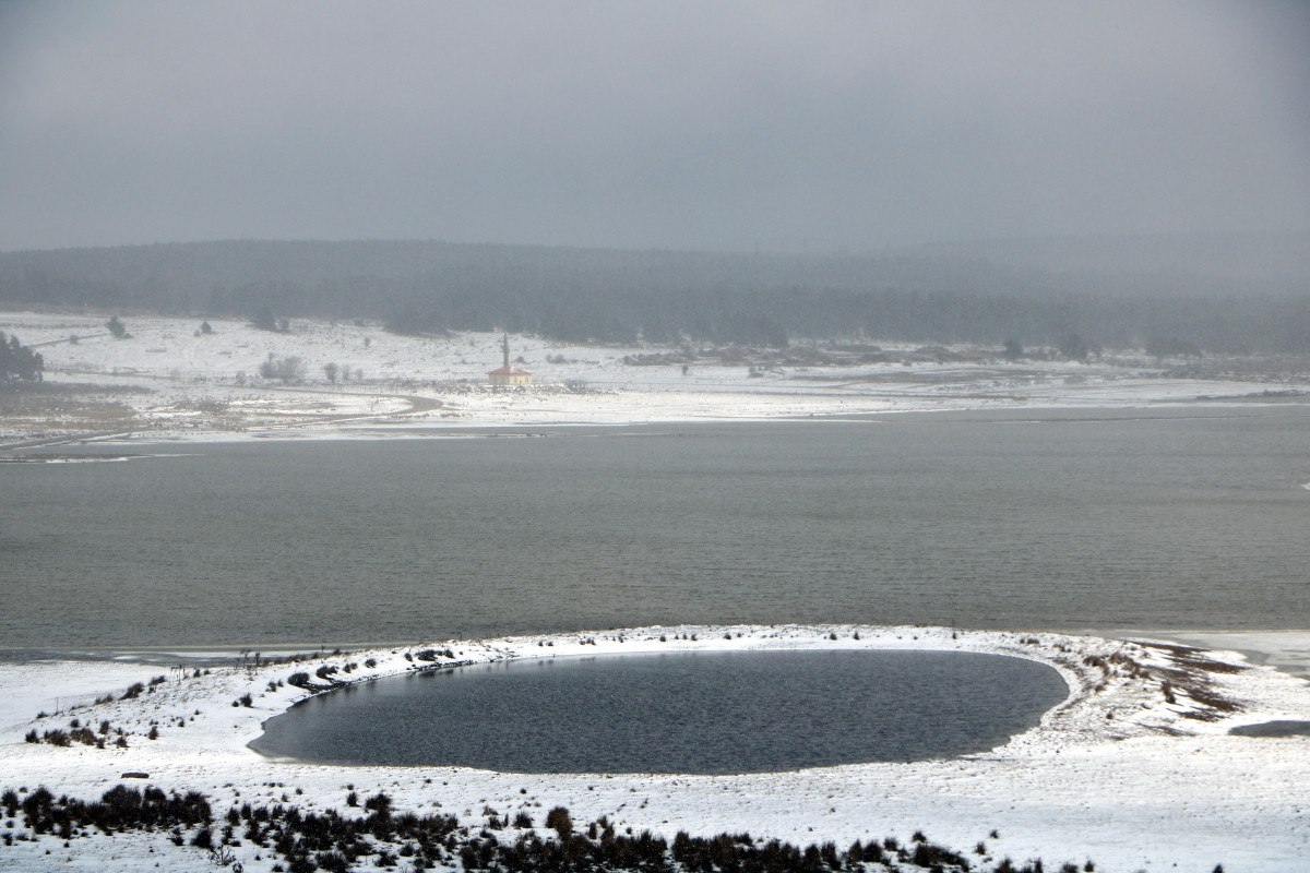 Taşlıyayla Göleti ile çevresindeki yaylalar ve Aladağ bölgesi etkili olan kar yağışının ardından karla kaplandı.