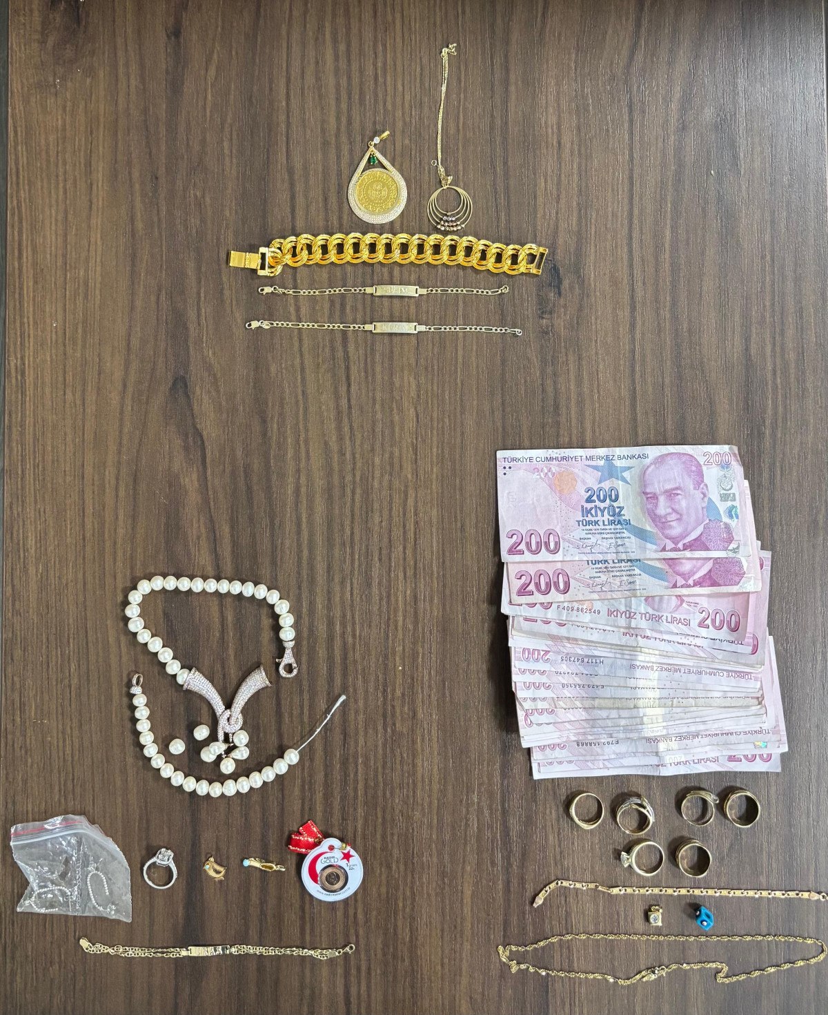 Kadınların üzerlerinde yapılan aramada evlerden çaldıkları ziynet eşyaları ve 7 bin TL para çıktı.