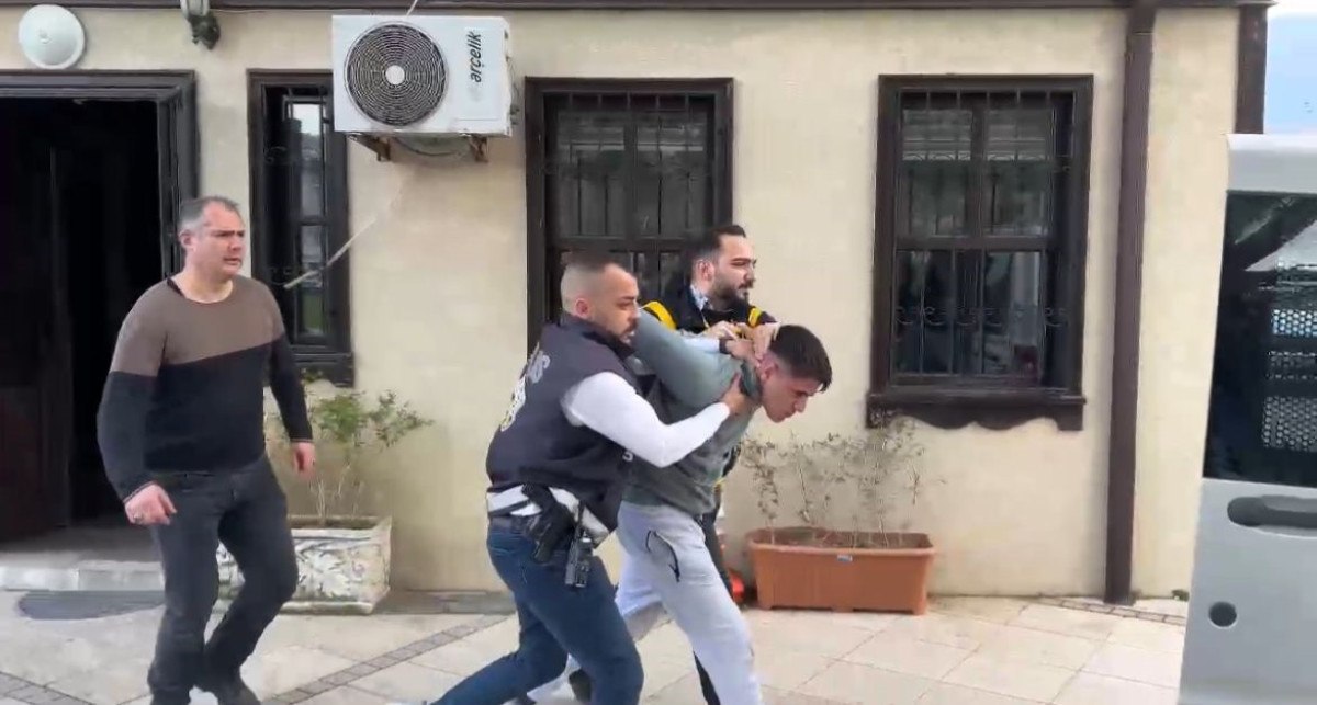 Bir süre hareketsiz kalan şüpheliyi, ekipler “Doğukan gel hadi” diyerek gözaltına alırken, şüphelinin şaşkın tavırları kameraya anbean yansıdı.