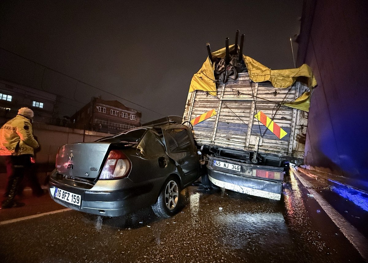 Bursa’nın Yıldırım ilçesi Ankara Yolu Caddesi’ndeki alt geçitte Cenk D. yönetimindeki otomobil, çarptığı kamyonetin altına girdi.