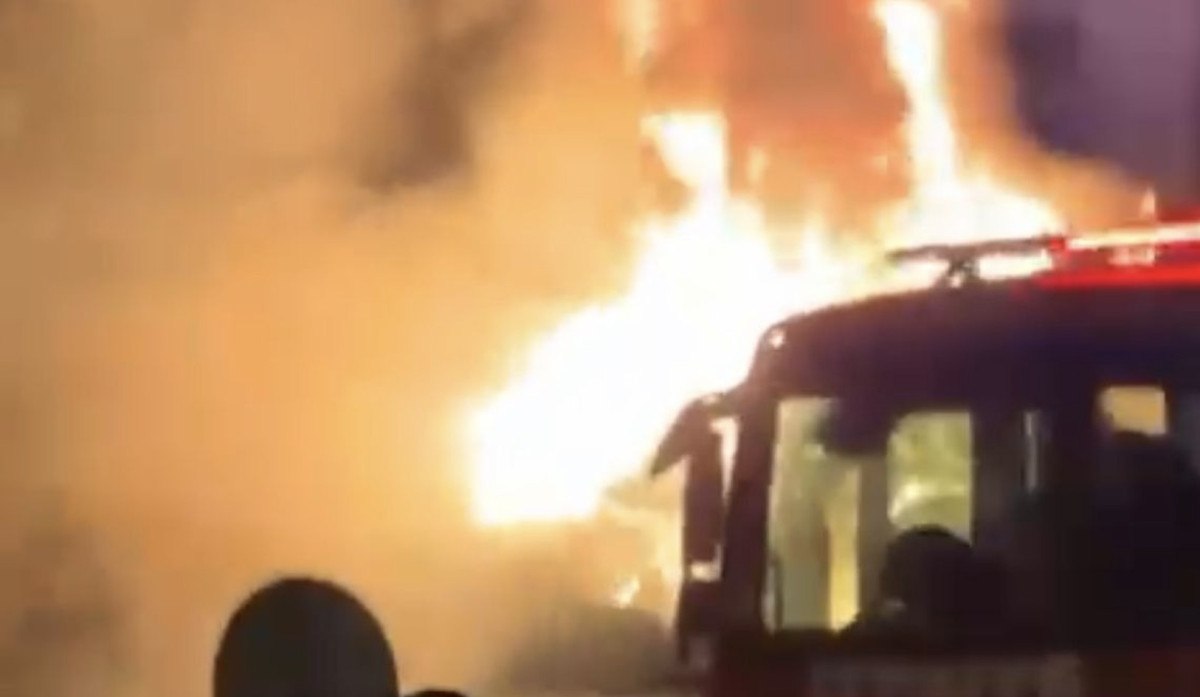 Polis, yangını söndürmek isteyen itfaiye ekiplerine engel olmak isteyen U.C.K.’yi gözaltına aldı.