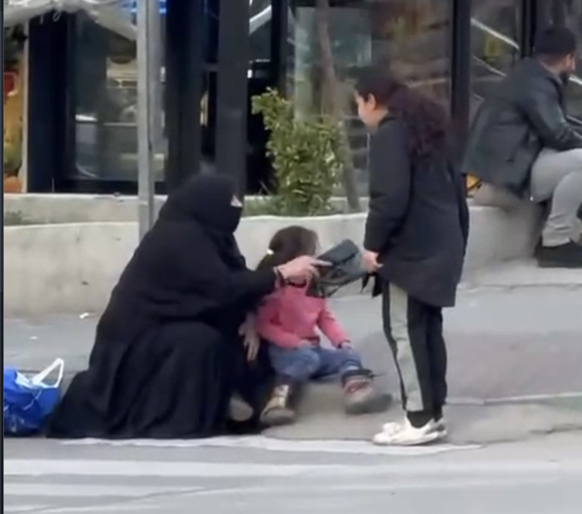 Olayda, dilenmek için çocuklarıyla dışarı çıkan dilenciler, beğendikleri yeri paylaşamadı.