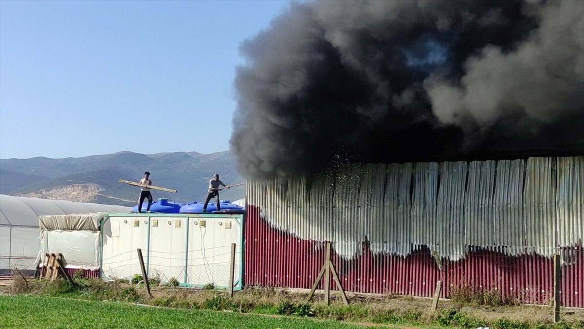 Alevleri fark eden seradaki tarım işçileri, dışarı çıkıp durumu yetkililere bildirdi.