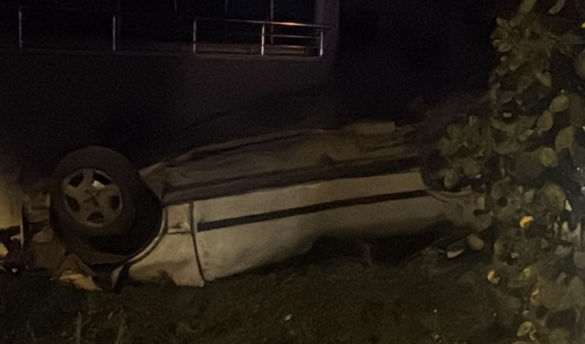 Bursa’da kontrolden çıkan otomobil duvarı aşıp takla attı: 1 yaralı