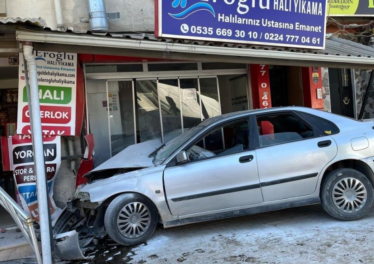 Bursa’nın İnegöl ilçesinde meydana gelen kazada, kontrolden çıkan bir otomobil, iş yerine çarparak durabildi. Olay, saat 14.00 sularında Alanyurt-İnegöl yolu üzerinde yaşandı.