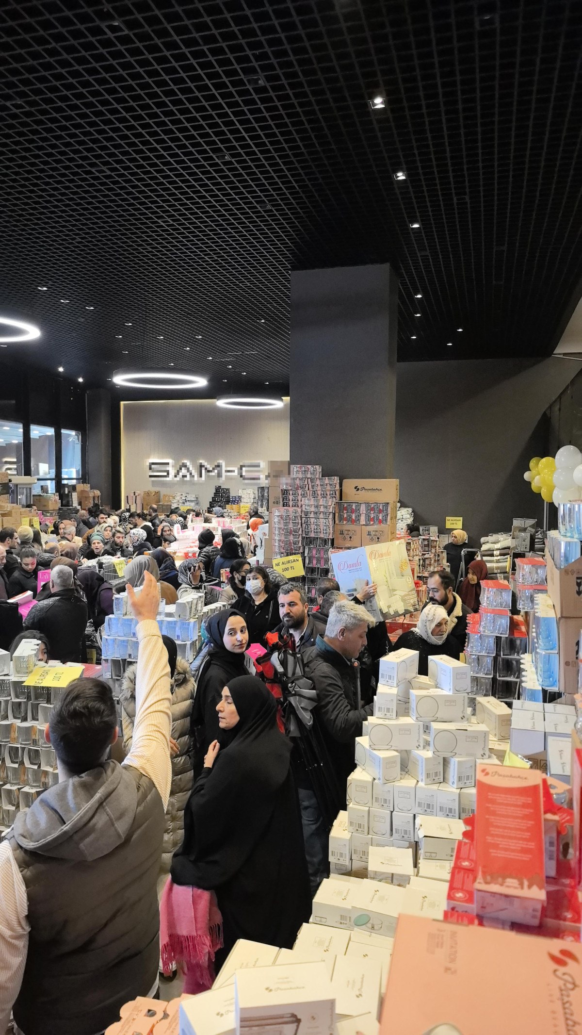 Satılacak ürünlerin fiyatlarının ucuz olduğunu duyanlar, sabahın erken saatlerinde mağazanın önünde toplandı.