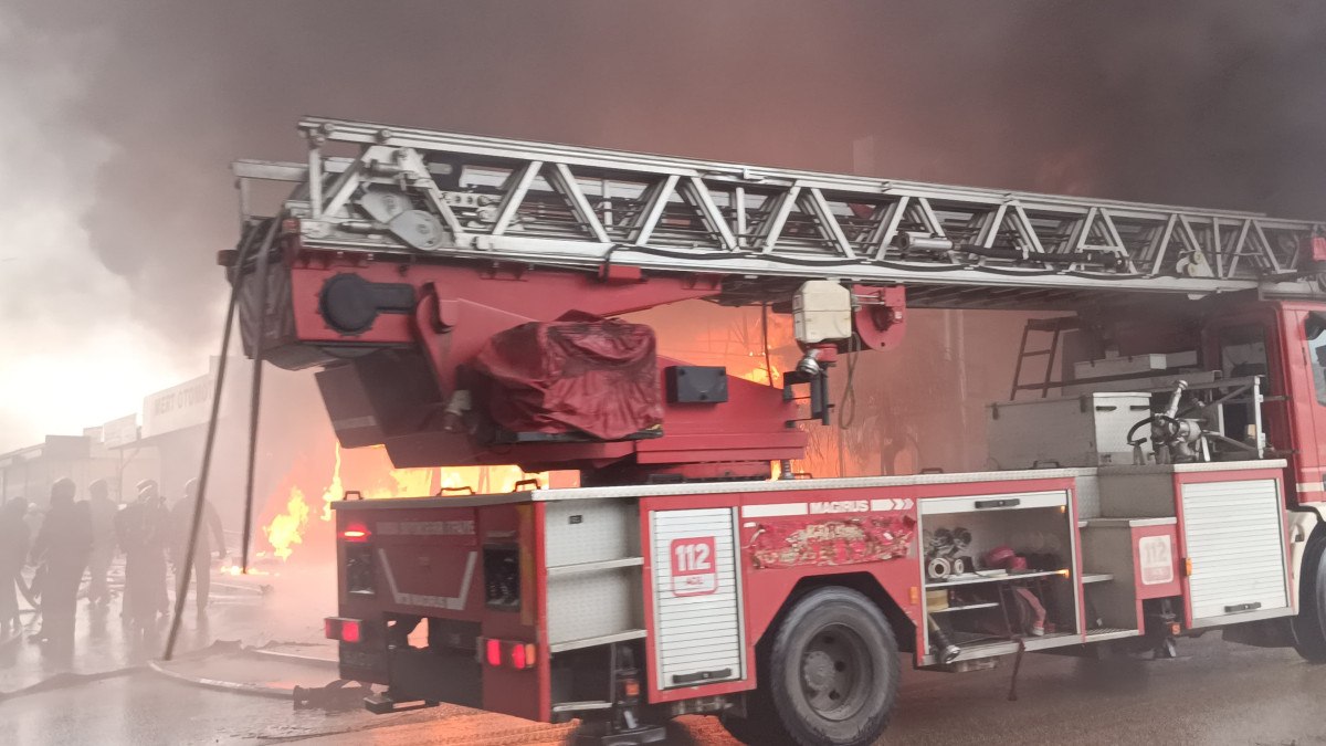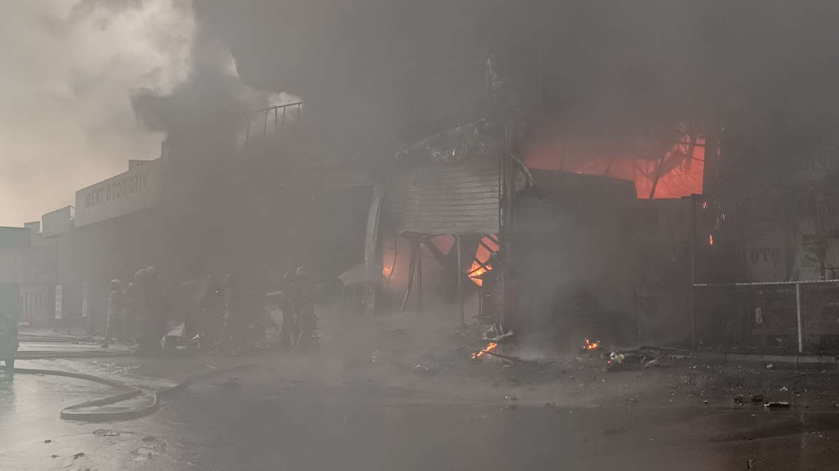 Zaman zaman patlamaların yaşandığı yangına, itfaiye ekiplerinin müdahalesi sürüyor.