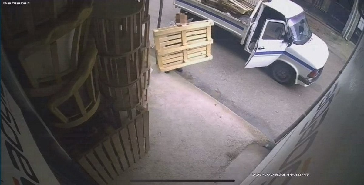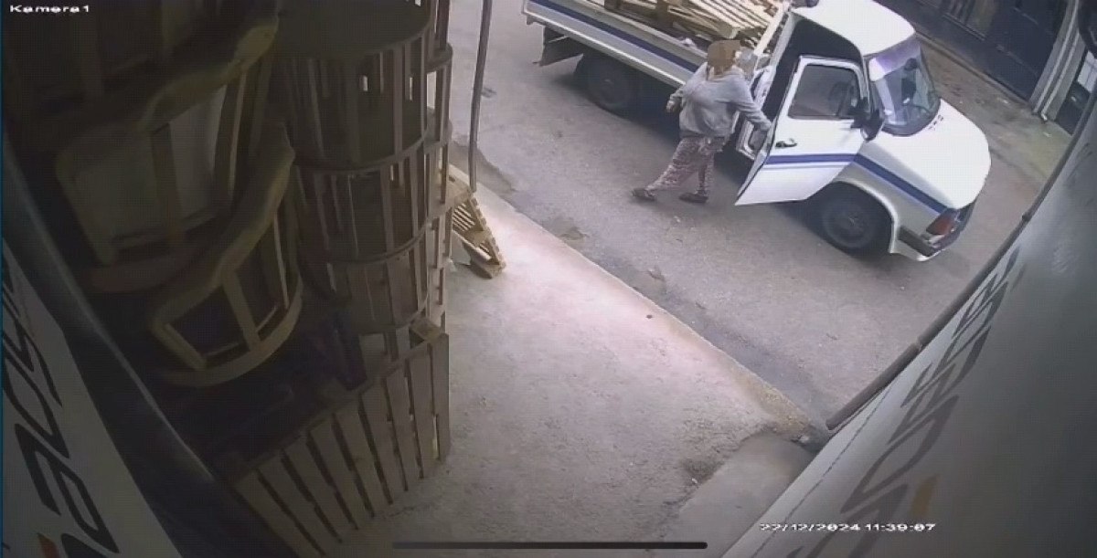 Kadın şüphelinin kamyonetten inip, paletleri araca yüklediği anlar görüntülere yansıdı.