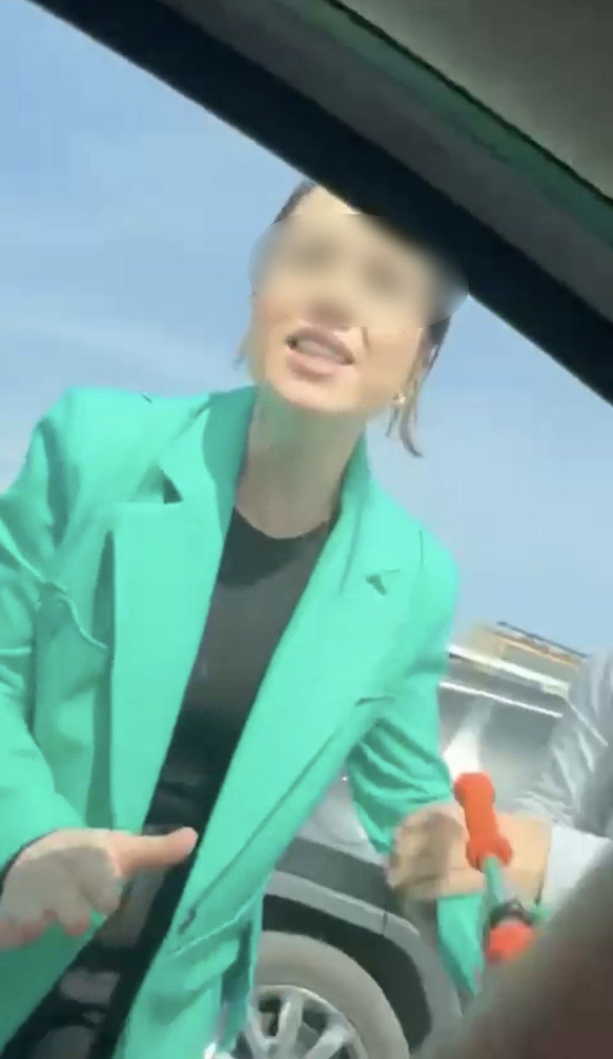 Duruma sinirlenen sürücü, araçtan inerek hamile olduğu iddia edilen kadın sürücünün aracına zarar verdi.