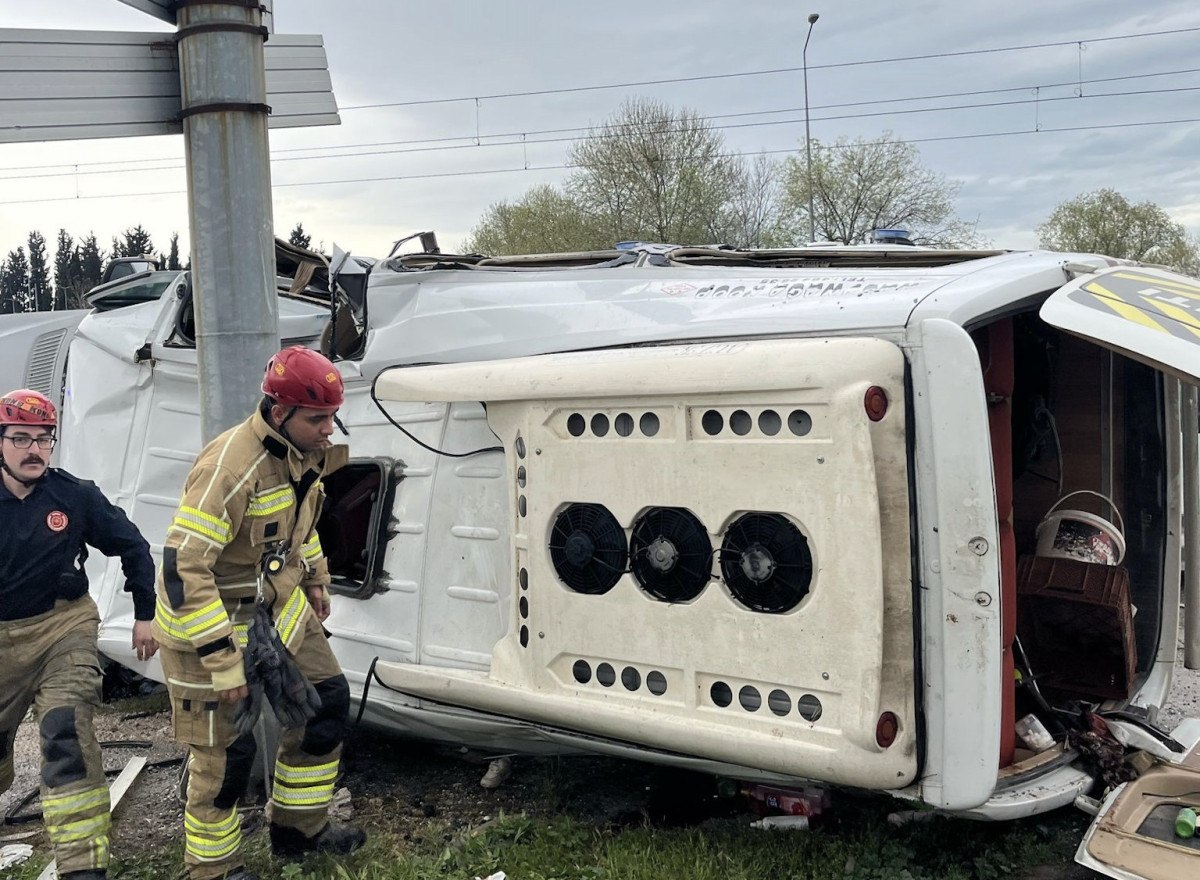 Osmangazi ilçesinde Muharrem B. idaresindeki servis minibüsü, Yalova istikametinde seyir halindeyken, yağışlı havanın etkisiyle kontrolden çıkıp refüje uçtu.