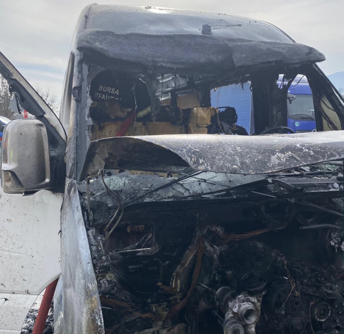Saat 12.00 sıralarında, İbrahim K.yönetimindeki minibüsün motor kısmından duman çıkmaya başladı.