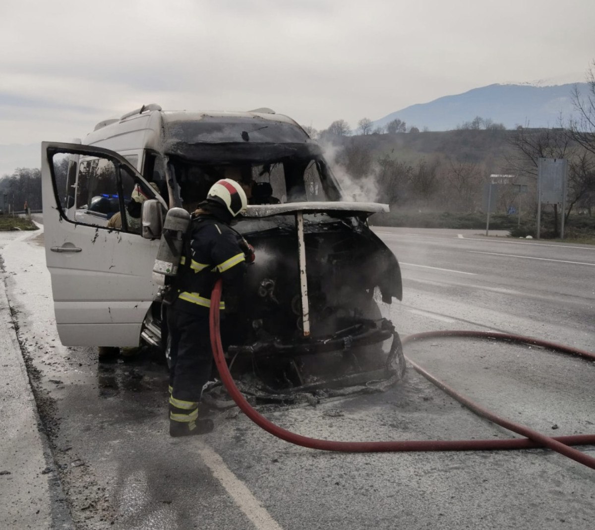 Saat 12.00 sıralarında, İbrahim K.yönetimindeki minibüsün motor kısmından duman çıkmaya başladı.