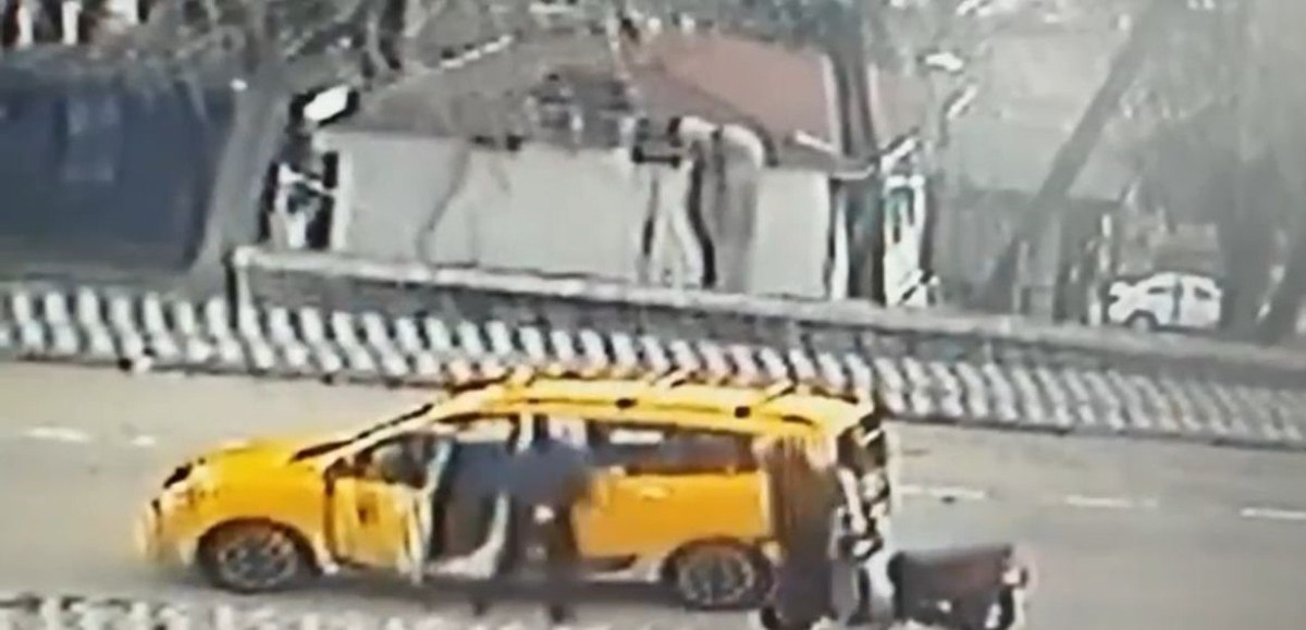 Bursa’nın Osmangazi ilçesine bağlı Çekirge Caddesi üzerinde ilerleyen bir ticari taksi sürücüsü, yol verme nedeniyle bir motosiklet sürücüsü ile tartıştı.