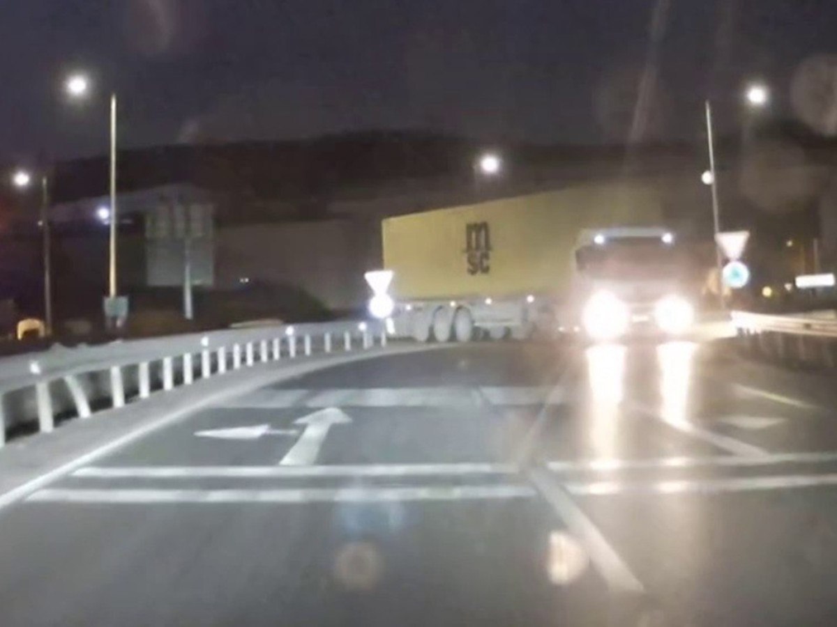 Bursa’da ters yöne giren tır faciaya davetiye çıkardı