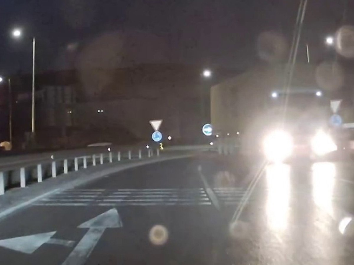 Tırın ters yönden geldiğini fark eden otomobil sürücüsü son anda frene basarak muhtemel bir faciayı önledi.