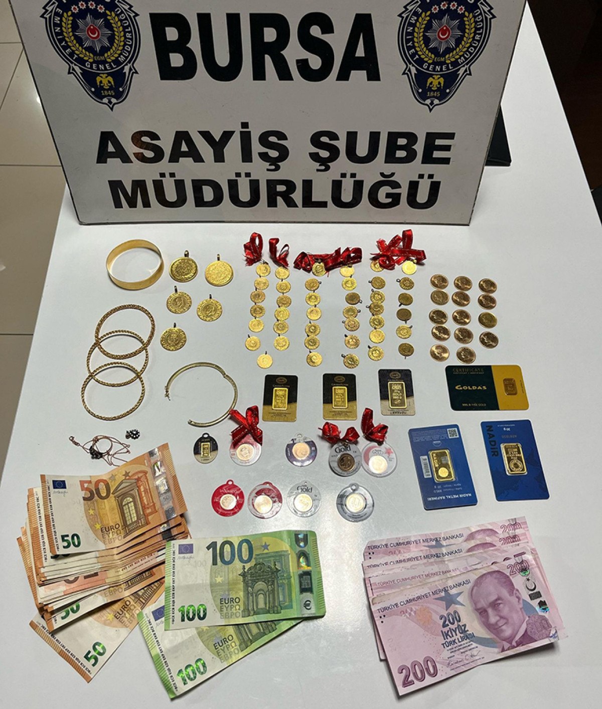 Asayiş Şubesi ekipleri M.Y.’ye şüphelinin adı, soyadı ve telefon numarasını vermesi sonucu ulaşıp evine giderek 2 milyon lira değerindeki altın, euro ve Türk lirasını kendisine teslim etti.