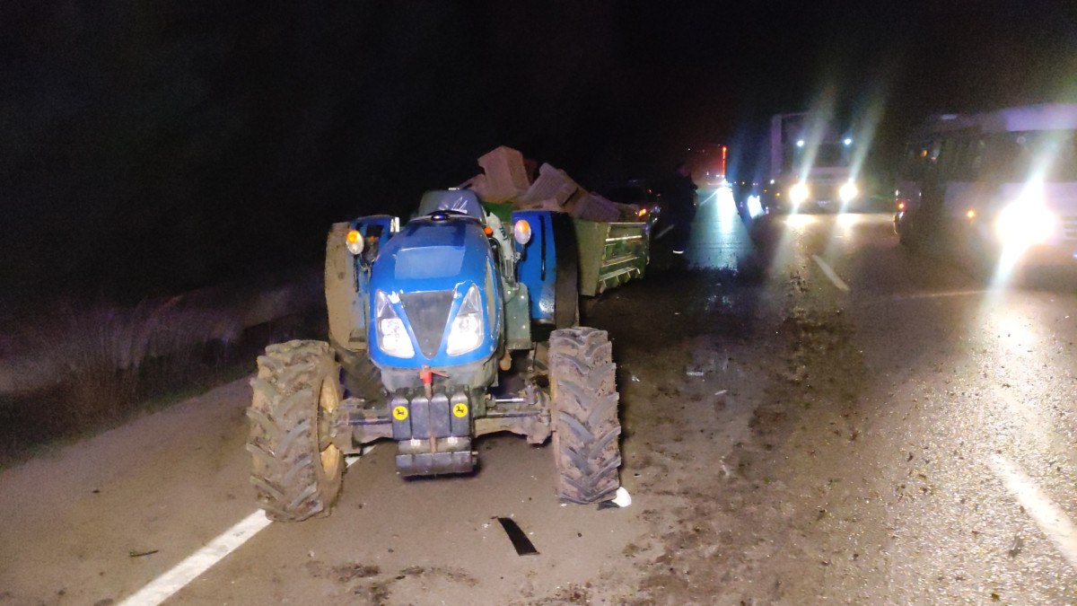 Bursa’nın Orhangazi ilçesi istikametinden İznik istikametine gitmekte olan polis memuru Muhammet Emin D. (22) yönetimindeki otomobil, arka lambaları yanmayan Burhan K. (46) yönetimindeki traktörün römorkuna çarptı.