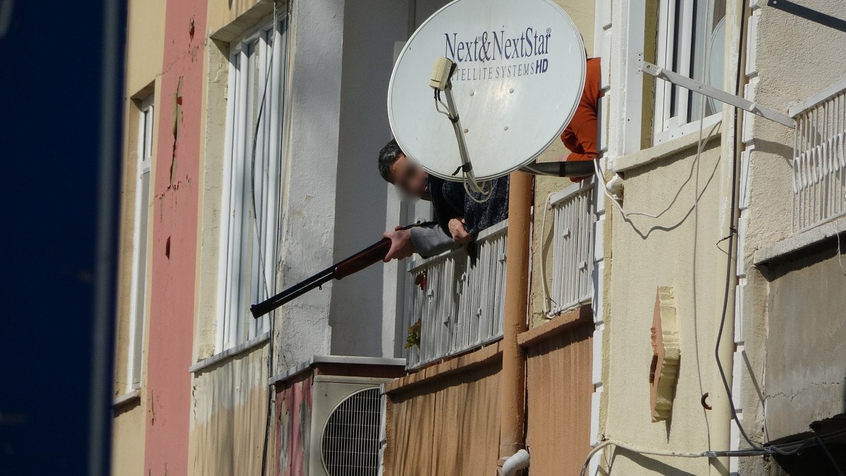 Şahıs ise av tüfeğini zaman zaman sokakta bulunan polislerin ve vatandaşların üzerine doğrulttu.