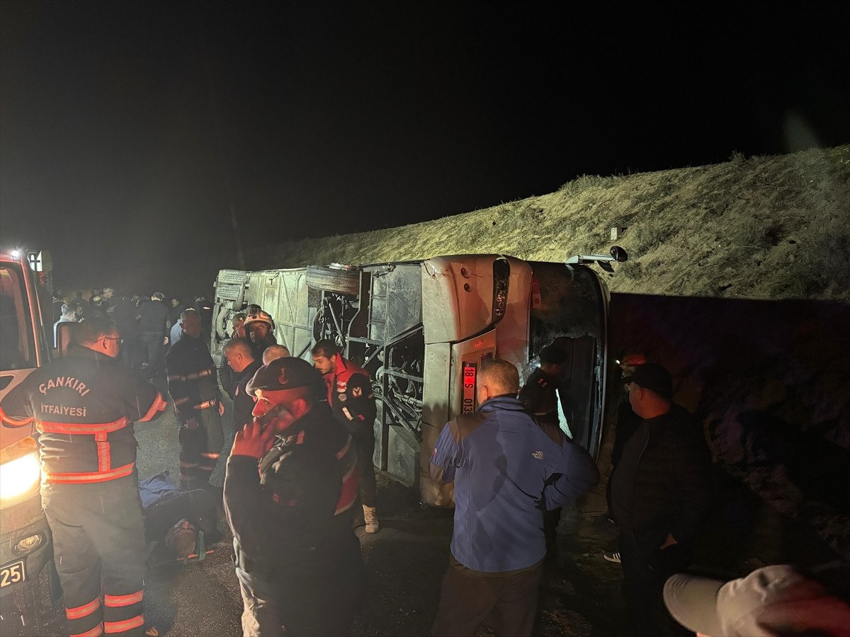 Çankırı’da Ankara kara yolu Aşağıpelitözü mevkiinde Mustafa G. yönetimindeki servis otobüsü şarampole devrildi.