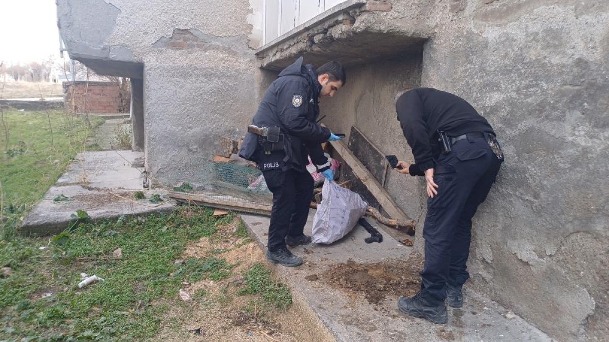 Polis ekiplerince olay yerinde yapılan incelemeler neticesinde pompalı tüfek, odunların altına gizlenmiş halde bulundu.
