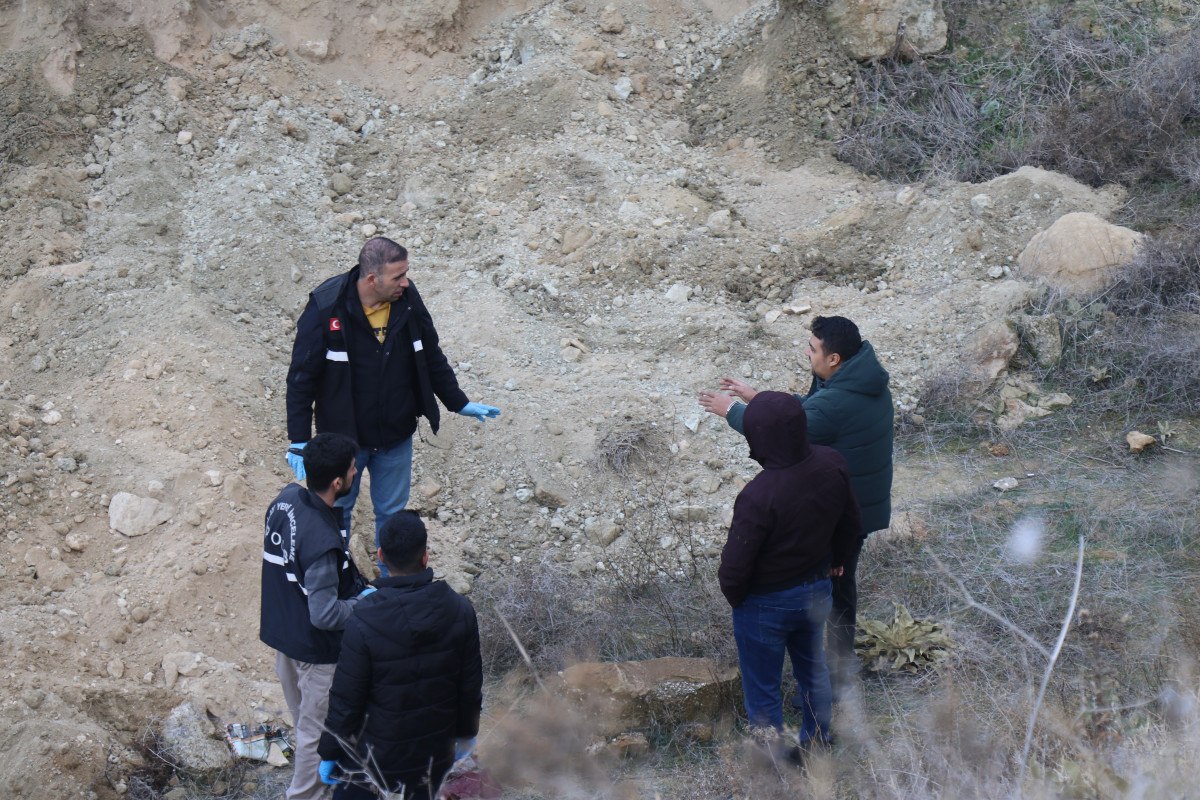 Cinayet Büro Amirliği ve Olay Yeri İnceleme Şube Müdürlüğü ekipleri, şüpheli Ö.T.’nin yer göstermesine göre kazı çalışmalarına başladı.