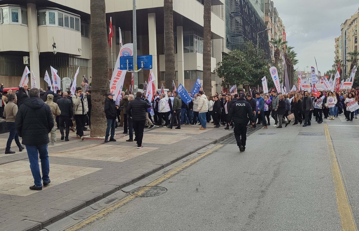 Denizli’de beş sendikaya bağlı çok sayıda katılımcı, saat 12.00 sıralarında CHP Denizli İl Başkanlığı binasının da bulunduğu Gazi Mustafa Kemal Bulvarı’nda bir araya geldi.