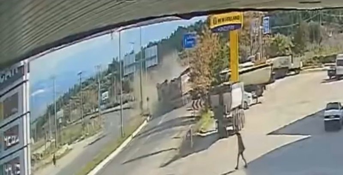 Meydana gelen feci kazanın görüntüleri ortaya çıktı. Karayolu üzerinde faaliyet gösteren bir akaryakıt istasyonunun güvenlik kamerasına yansıyan görüntülerde tırın kontrolden çıkarak, karşı şeride geçip karşı yönde gelen tıra çarptığı anlar yer aldı.