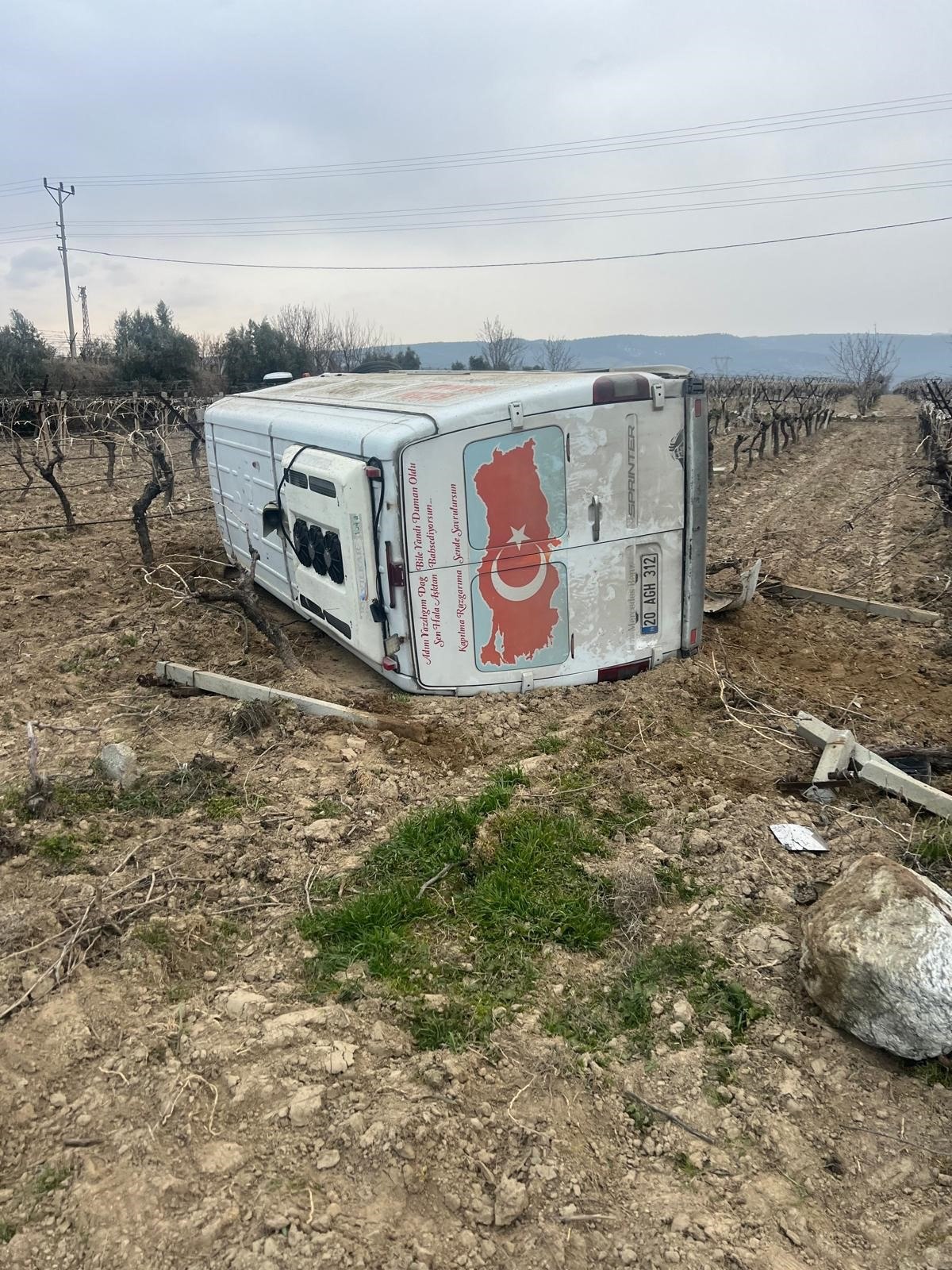 Kontrolden çıkan minibüs, yol kenarındaki üzüm tarlasına uçtu.