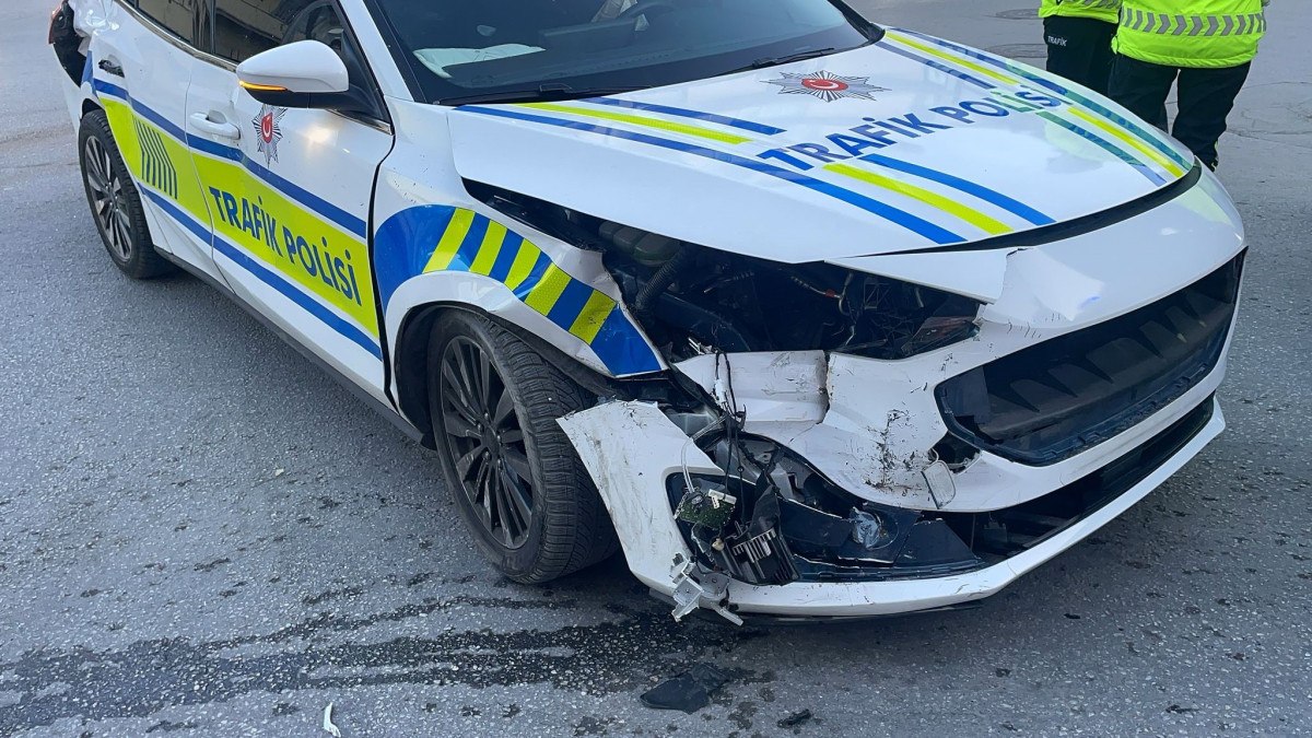 Otomobil, bu sırada kavşakta ilerleyen polis ekibinin aracıyla çarpıştı.