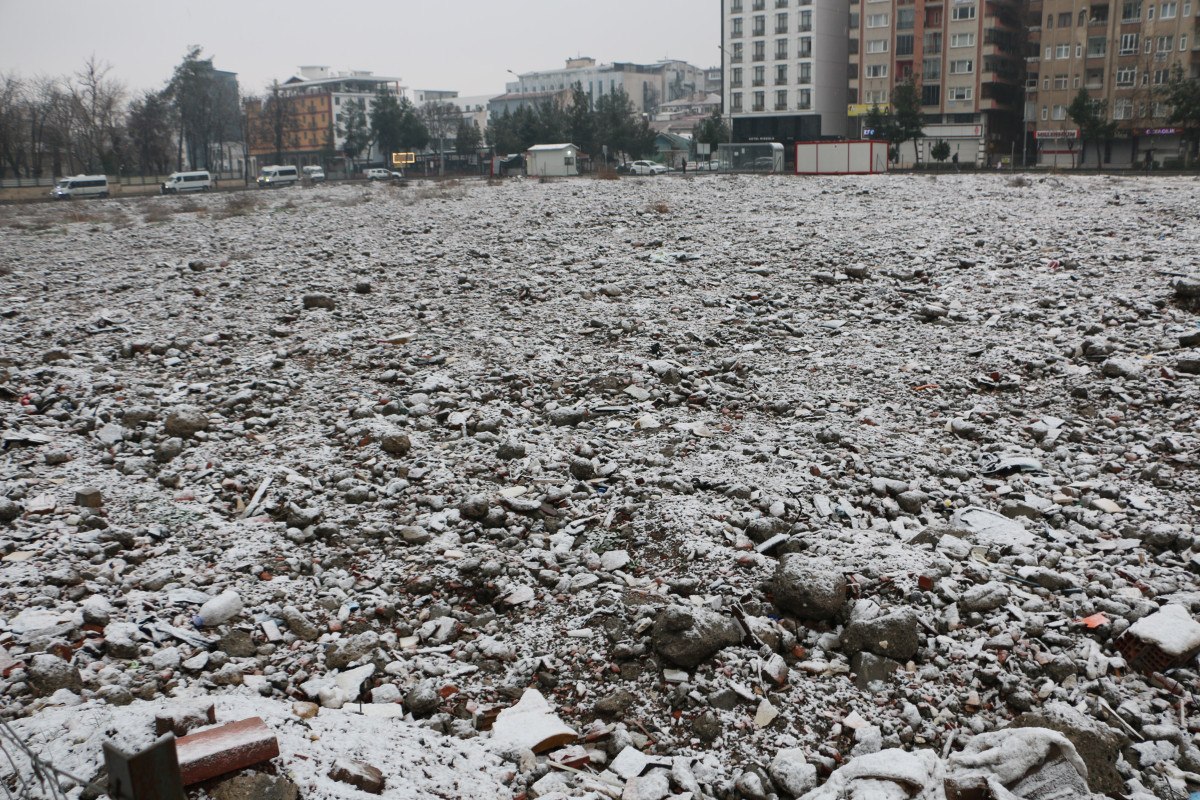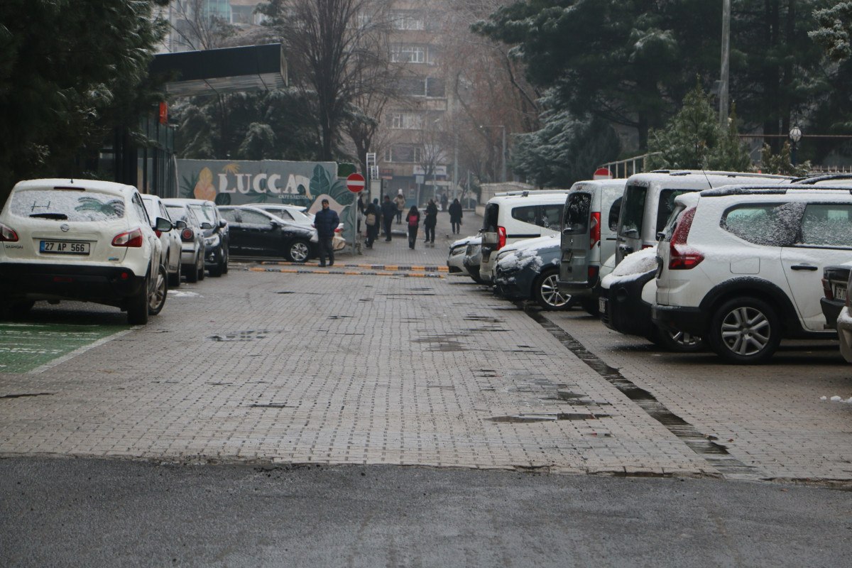 Diyarbakır’da sabaha kadar devam eden yağışla birlikte cadde ve sokaklar beyaza büründü.