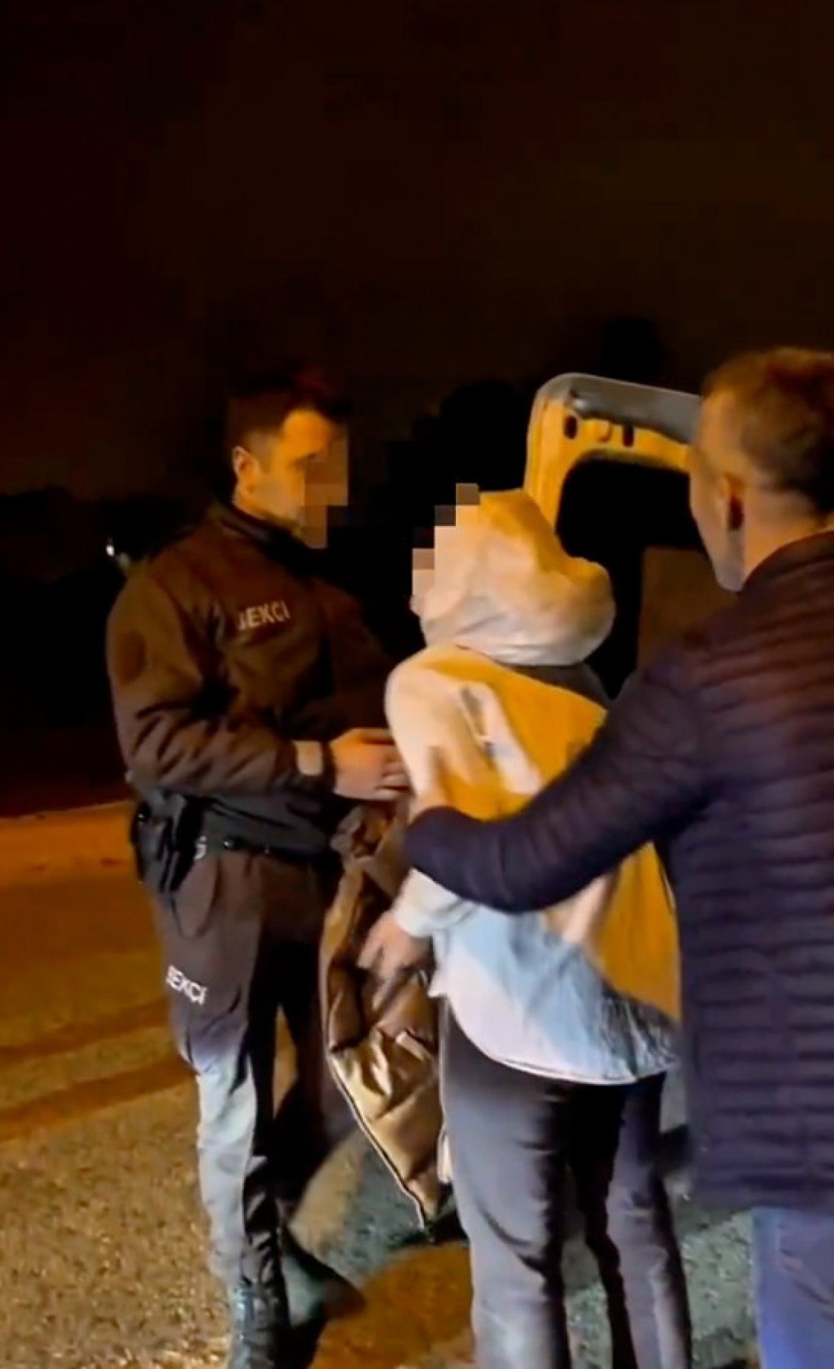 Durdurulan araçta alkollü olan ve henüz ismi öğrenilemeyen kadın, bekçilere zor anlar yaşattı.