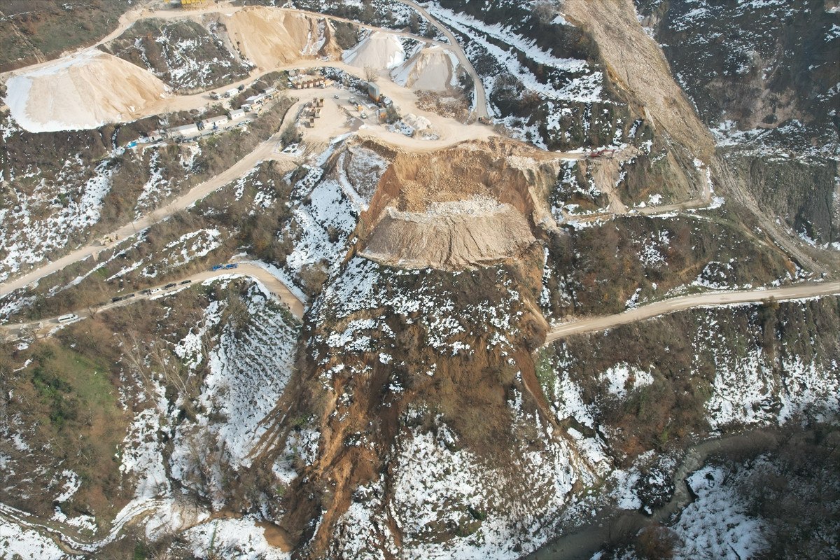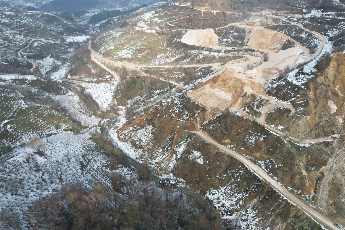 Düzce’nin Yığılca ilçesindeki Hacıyeri ve Hocatman köylerini ilçe merkeziyle bağlayan yolun taş ocağı bölgesinde yaklaşık 50 metrelik bir alanda heyelan meydana geldi.