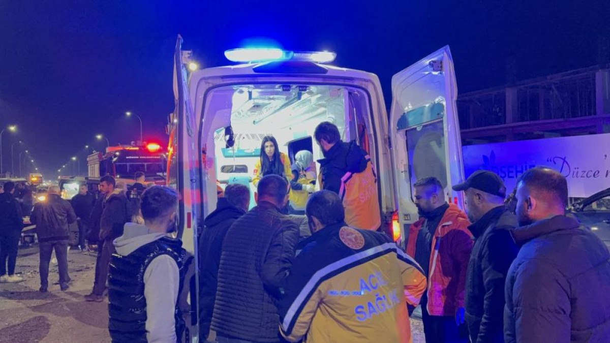 Düzce Akınlar Mahallesi 2580. Cadde üzerinde, fen lisesi istikametinden sanayi istikametine seyir halinde olan Berke A. idaresinde 67 TT 977 plakalı Fiat marka hafif ticari araç, karşı istikametten gelen Engin B. idaresindeki 67 SL 008 plakalı oto çekici ile kafa kafaya çarpışmasının ardından Miraç Yaser T. idaresindeki motosiklete çarptı. Çarpışmanın etkisi ile Fiat marka araç içerisindeki 2 kişi sıkıştı. İhbar üzerine bölgeye sağlık, polis ve itfaiye ekipleri sevk edildi.