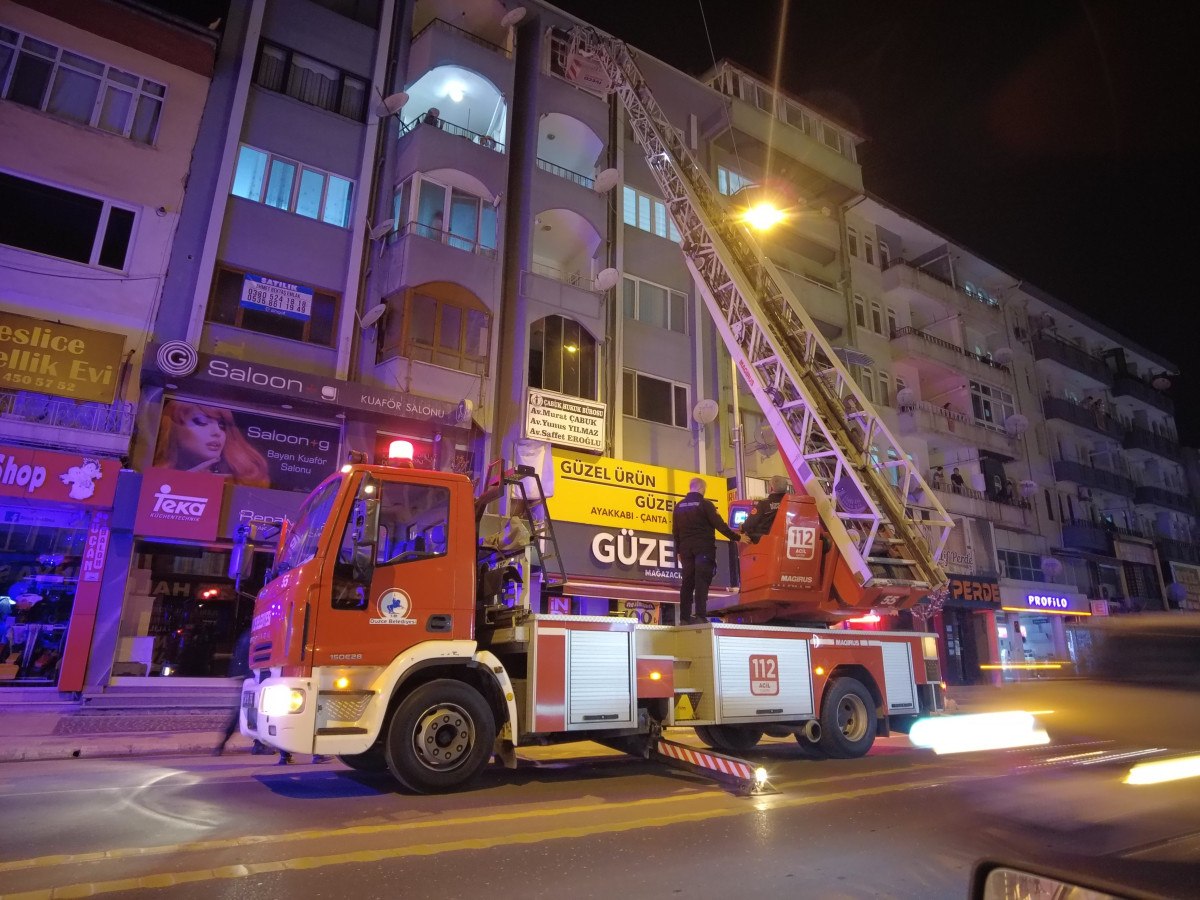İtfaiye ekipleri, merdivenli araçla eve balkondan girerek kapıyı açtı.