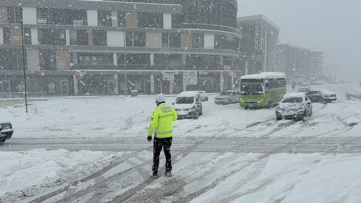 Polis ekipleri bölgede trafiğin açılması için çalışmalar yaparken, küreme ve tuzlama çalışmaları da sıklıkla yapıldı.