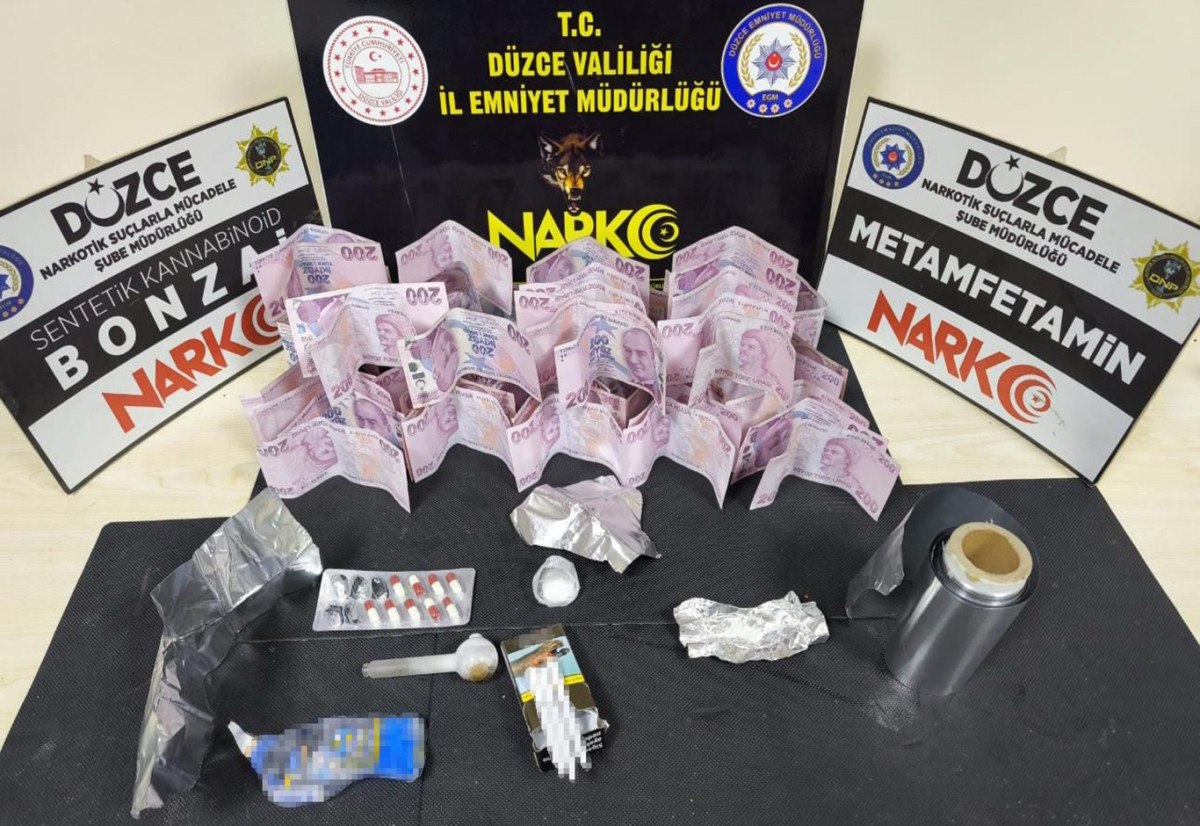 Operasyonda yapılan aramada 10 gram metamfetamin, 5 gram sentetik kannabinoid, uyuşturucudan elde edildiği değerlendirilen 10 bin 400 TL nakit para, uyuşturucu paketlemede kullanıldığı değerlendirilen folyolar ve 9 adet sentetik ecza maddesi ele geçirildi.