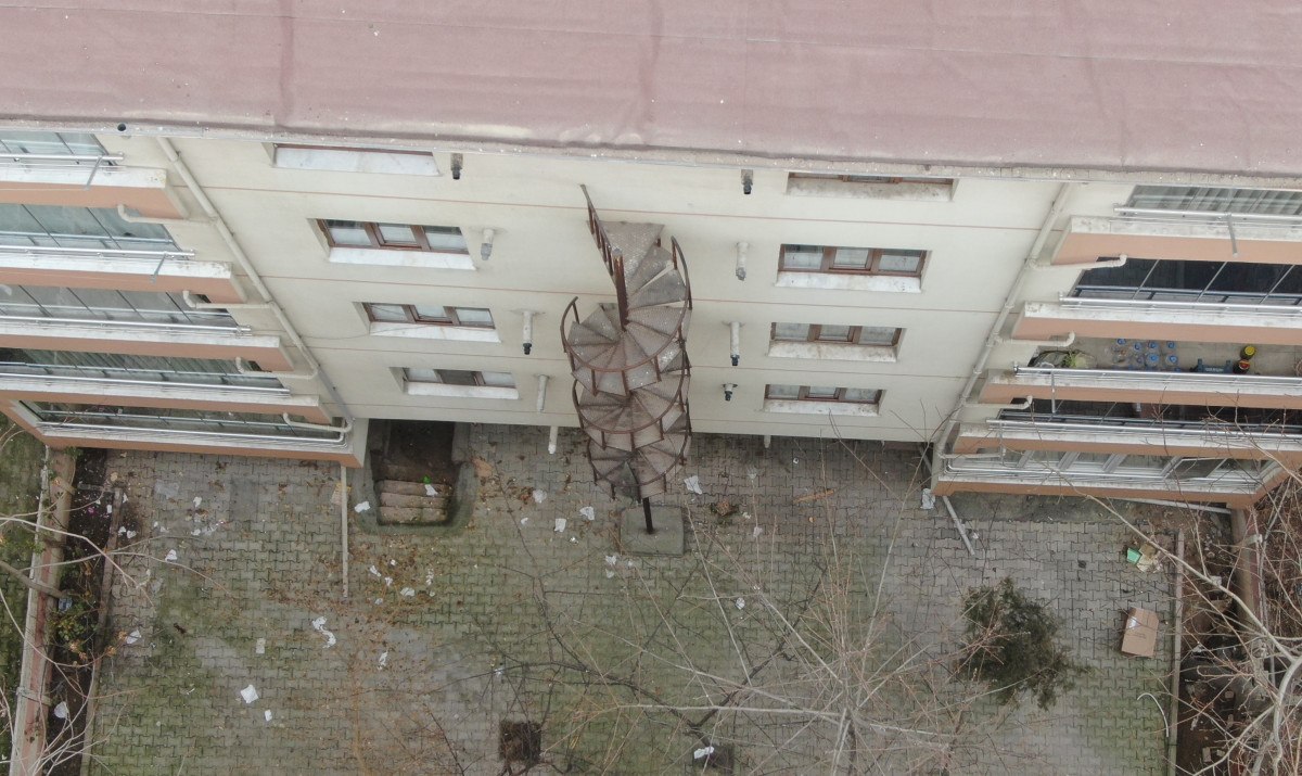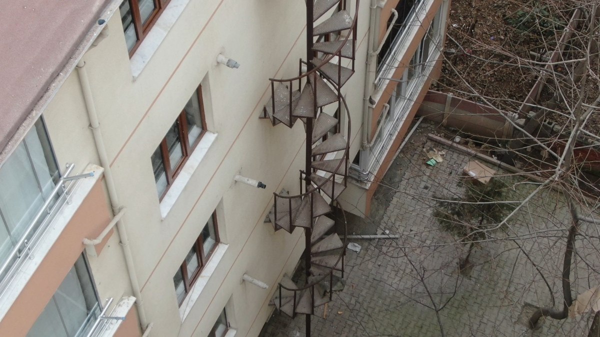 Elazığ’da Üniversite Mahallesi Efe Sokak’ta bulunan 5 katlı binanın yangın merdiveni görenleri hayrete düşürdü.