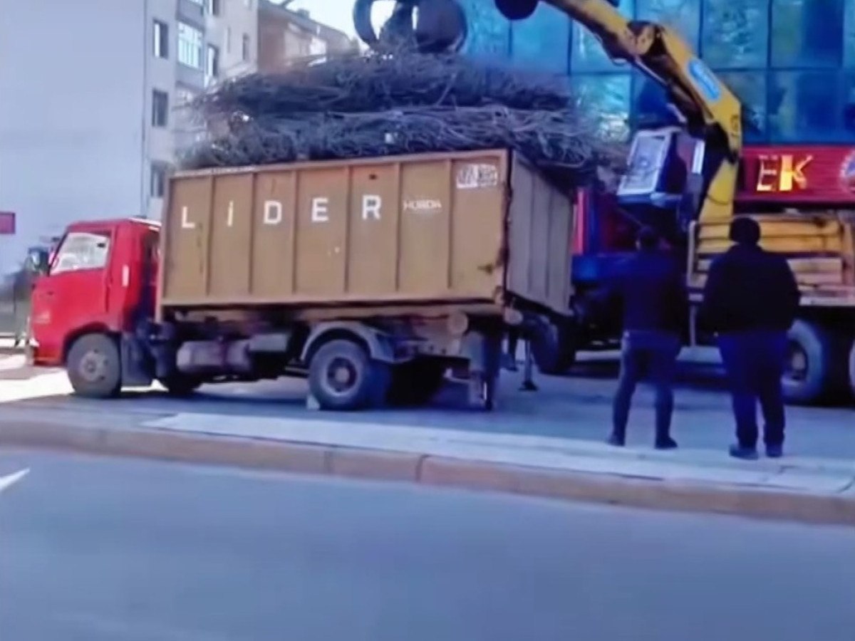 Fazla yüklenen demirden dolayı hareket edemeyen kamyonetteki yükler iş makinesi yardımı ile başka bir araca aktarıldı.