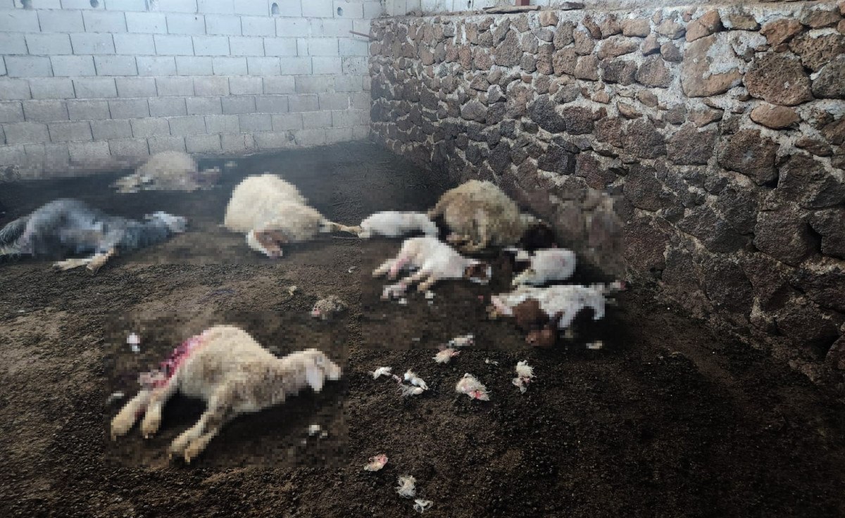 Sesleri duyunca dışarı çıkanlar, ahıra girdiklerinde 40 koyunun öldüğünü fark etti.