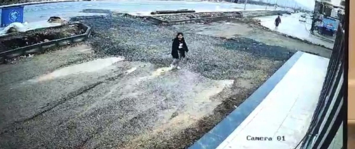 Küçük çocuğun yaralanmadığı anlar ise bir iş yerinin güvenlik kamerasıyla anbean kayda alındı.