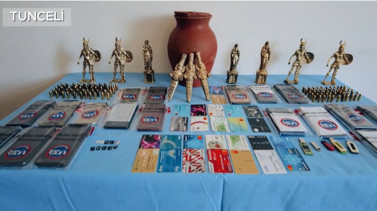 Şüphelilerin adreslerinde ise çok sayıda heykel, küp, sim kart, yüklü miktarda para ve silah ele geçirildi.