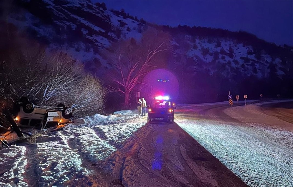Gümüşhane merkeze bağlı Akçahisar köyünde Enes A. yönetimindeki hafif ticari araç şarampole devrildi.