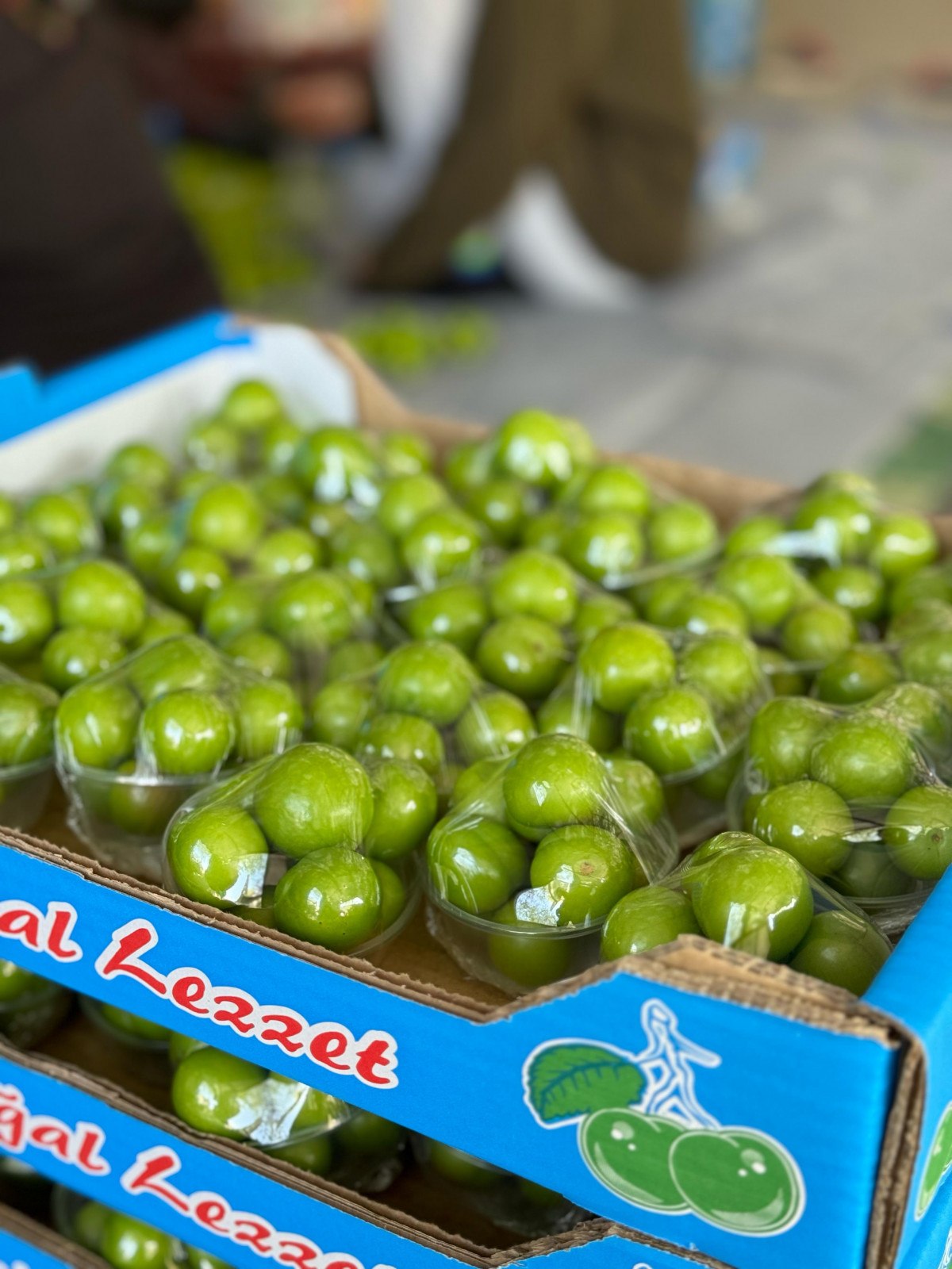 Yaklaşık 100 dönümlük örtü altı seralardan toplanan erkenci erikler, 100 gramlık paketlere konularak hem iç piyasaya hem de yurt dışına gönderildi.