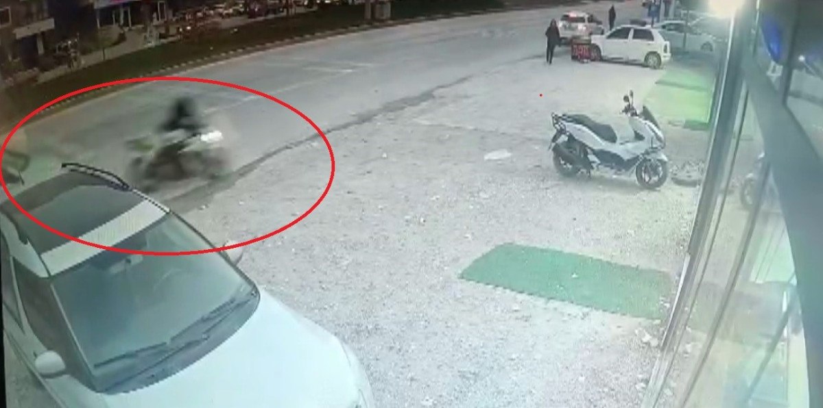 Motosiklet sürücüsünün yaralandığı feci kaza ise bölgede bulunan güvenlik kamerası tarafından kaydedildi